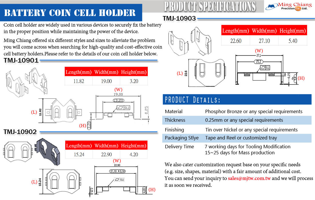 產品數據表(點擊此處): TMJ Battery Coin Cell Holder Series